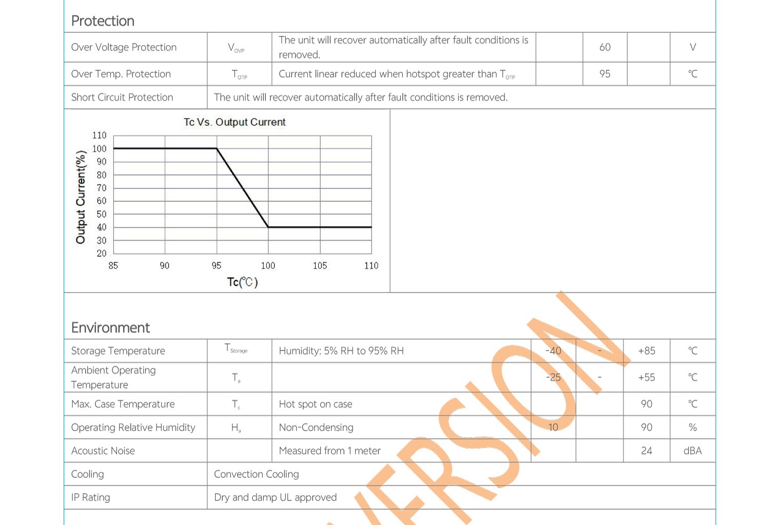 • Over Temperature Protection: Foldback mode, Linear decrease mode