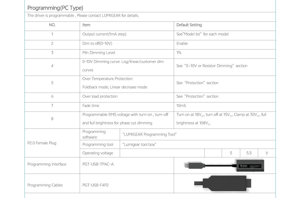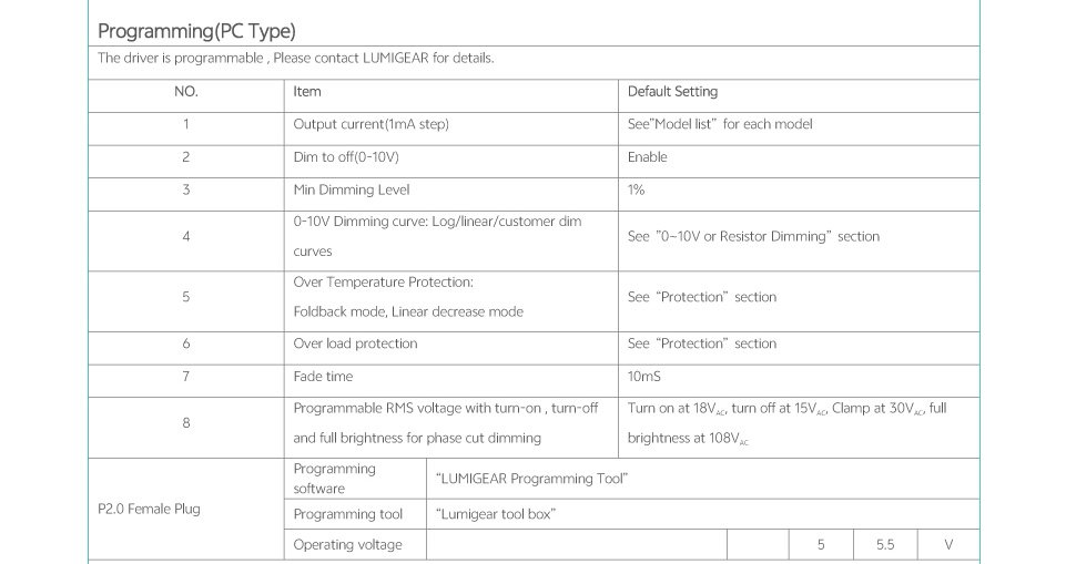 • External current select switch with programming feature, please contact LUMIGEAR for details(PC Style)
