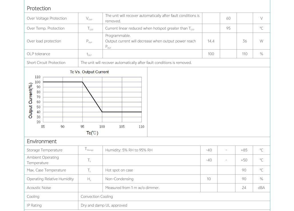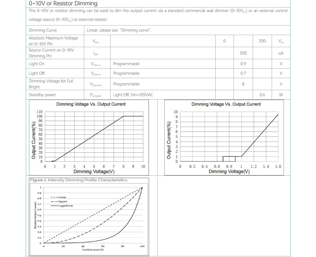 • Comply with phase cut dimming and isolated 0-10V dimming, dim down to true 1%