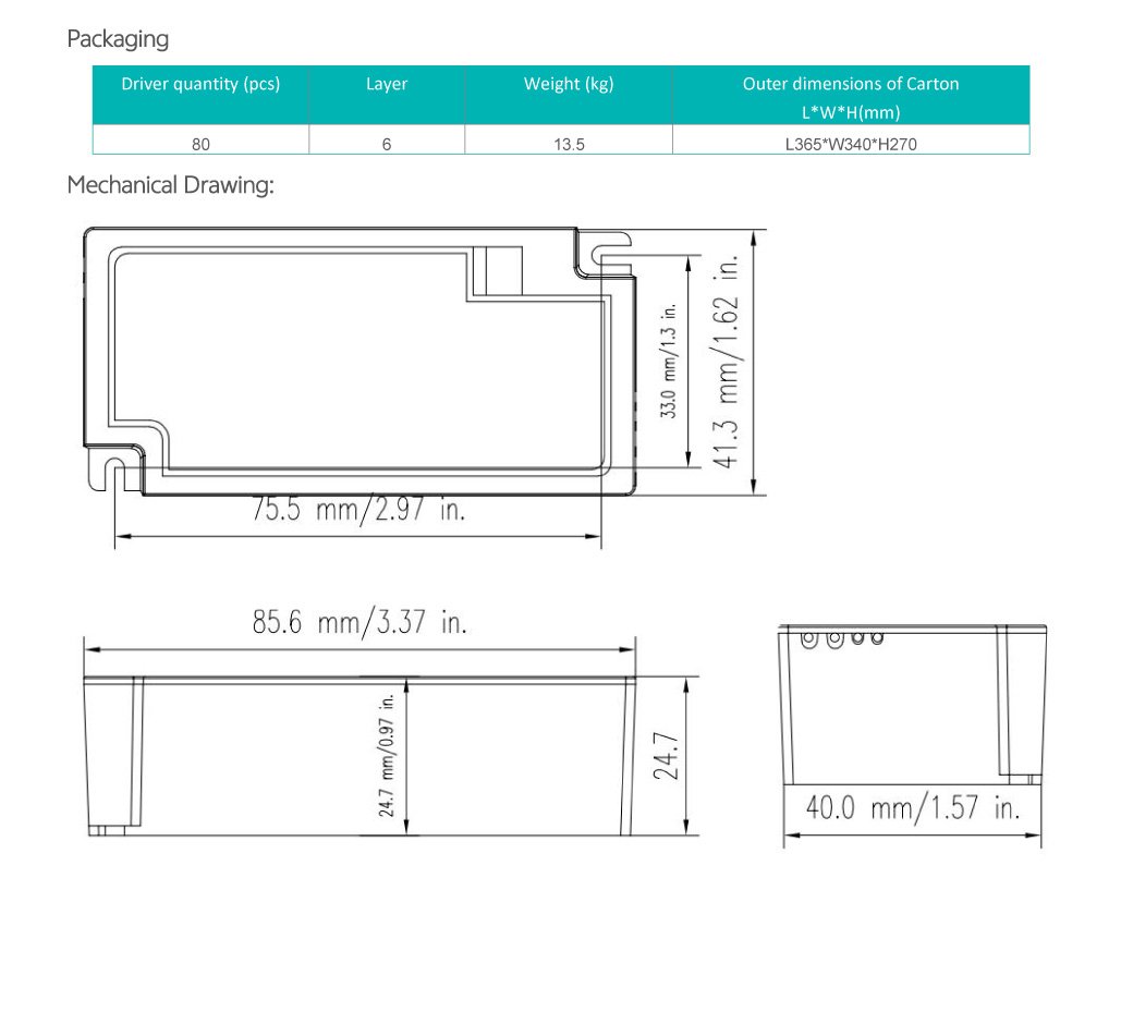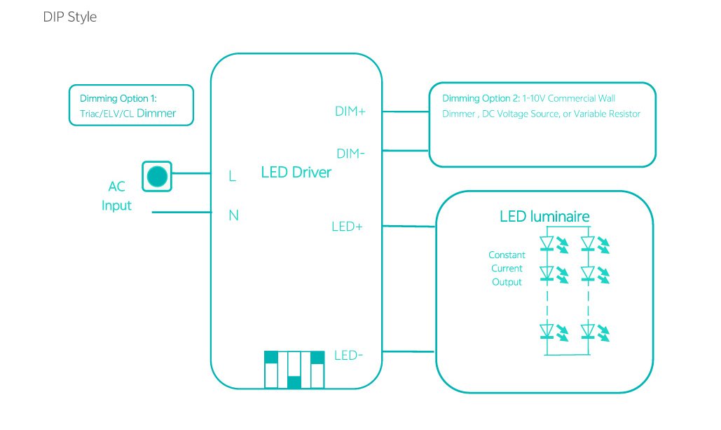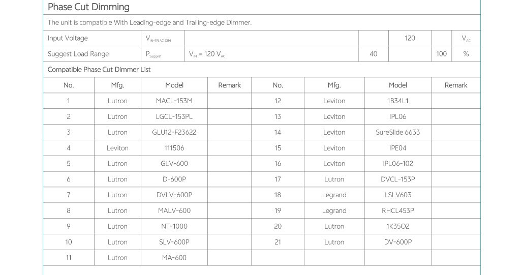 • Five‐in‐one dimming: 0-10V,1-10V,MLV,ELV,TRIAC