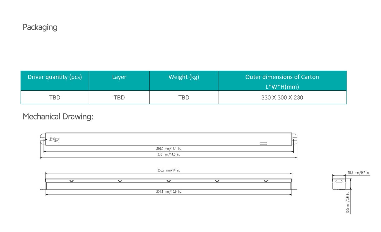 - Linear form factor, metal sheet case(white), side feed