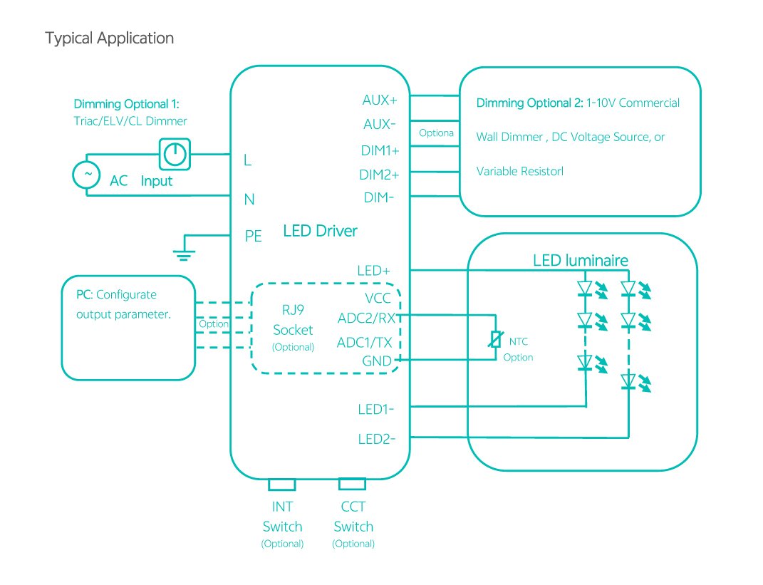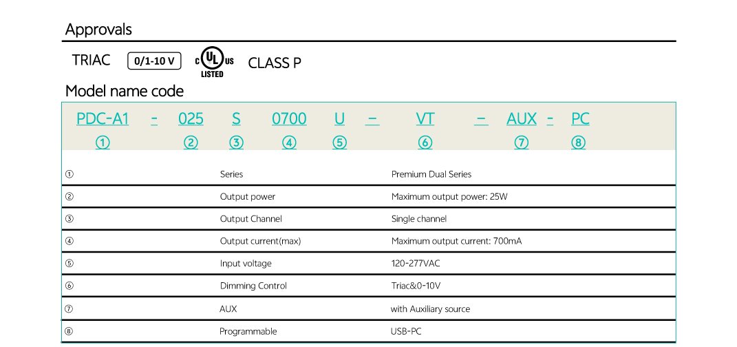 Model List Specifications Optional Function Aux power: 12-24V programmable,1W Built-in 3 current adjustment by INT switch Built-in 3/4/5CCT switch Mounting feet or stud type Digital and analog interface ready DownloadsPDC-A1-025S0700U-VT-AUX-PC-A-M PDC-A1-040S1200U-VT-AUX-PC-A-M PDC-A1-055S1500U-VT-AUX-PC-A-M 3D Drawing